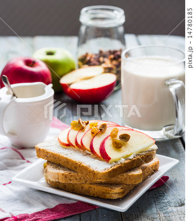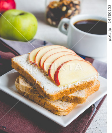 bran toast with cheese, apple