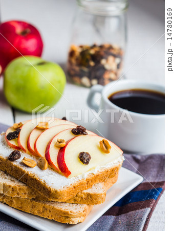 bran toast with cheese, apple and dried fruits