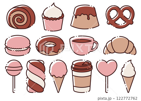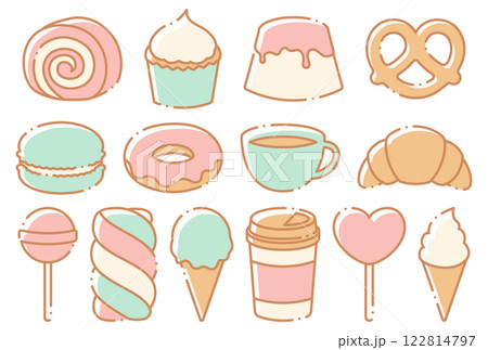 可愛的糖果、冰淇淋、咖啡插圖集
