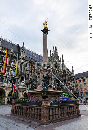 瑪利亞廣場的標誌“慕尼黑新市政廳”和瑪麗雕像