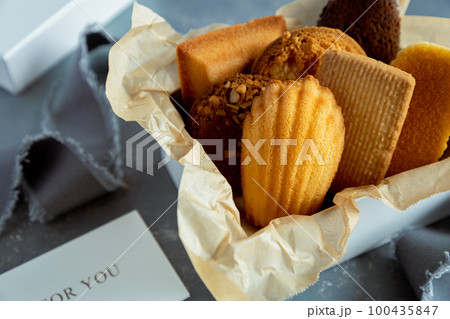 美味的瑪德琳蛋糕和餅乾的下午茶時間