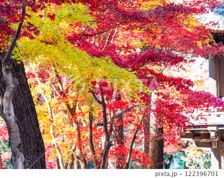 日本美麗的秋景:茂密的竹林和鮮豔的秋葉