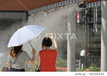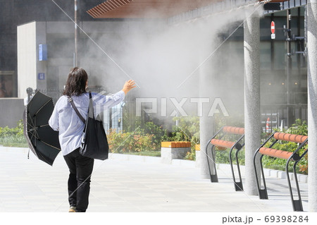 暴露在乾燥霧中,高溫,預防中暑,中暑對策的人一個女孩