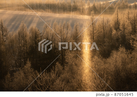 [北海道美瑛町] 夢幻般的燈光和站在雪原上的橡樹
