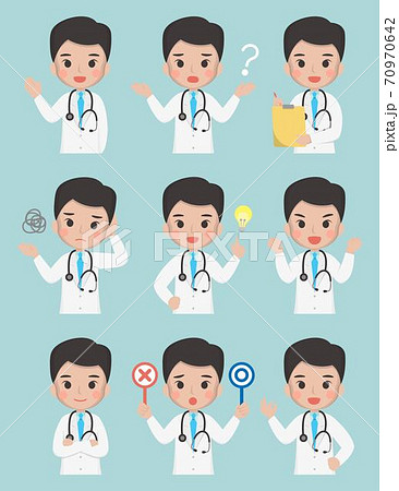 中年的醫學工作者,男性醫生,醫療,醫護人員,卡通漫畫插圖組合