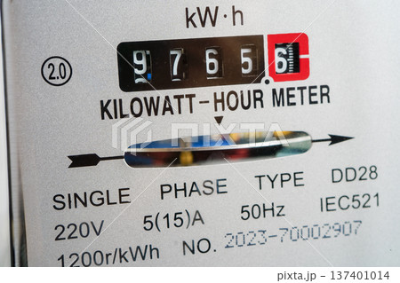 Bangkok, Thailand March 20, 2023,Electric measuring power meter for energy cost at home and office.