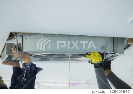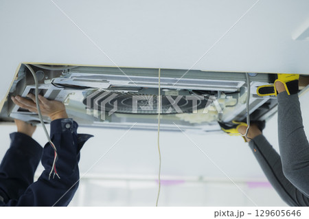 Engineer or technician work checking Fire suppression system and fire equipment.