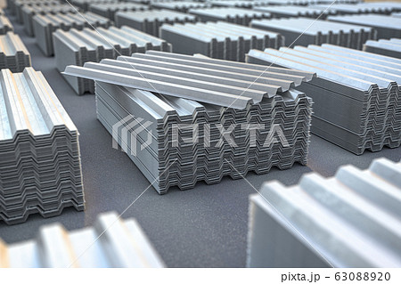Stacks of metal corrugated sheets, steel zinc or