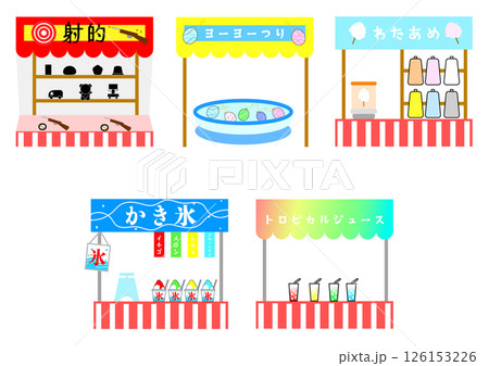 美食攤位組合:射擊場、悠悠球釣魚、棉花糖、刨冰、熱帶果汁、夏日釣魚、節日