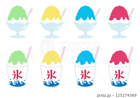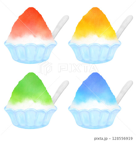 刨冰套裝插圖(草莓、檸檬、甜瓜、藍色夏威夷口味)