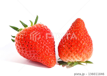 一顆香甜可口的草莓(產自埼玉縣的彌生姬)的橫切面特寫