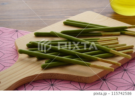 Closeup of Warabi mochi. Traditional Japanese sweet from bracken starch.