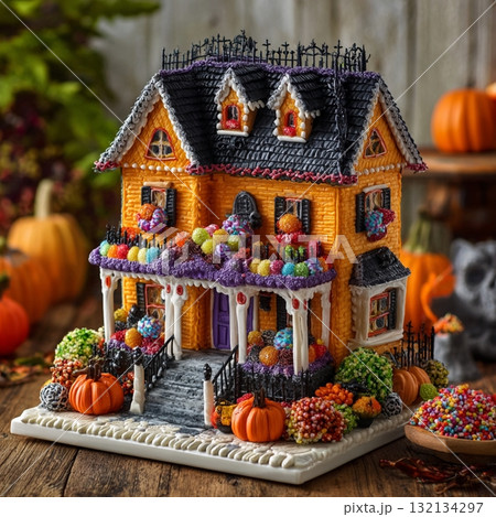 萬聖節小鎮:裝飾有微型鬼魂和南瓜的蛋糕