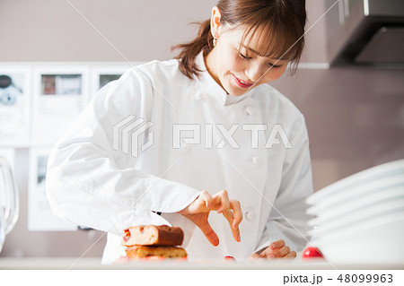 微笑的女糕點師拿著盤子擺放在透明背景上