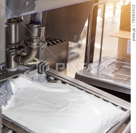 Production and production of cow's milk. Packing milk in bags, food industry