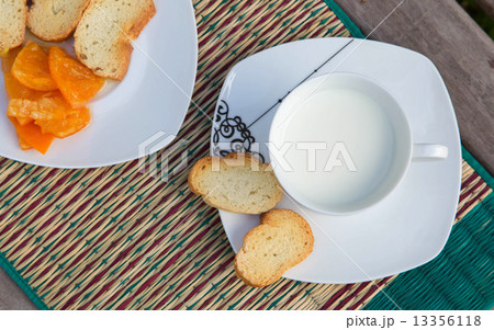 Warme milch in der weissen tasse