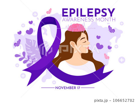 Epilepsy Awareness Month Vector Illustration is Observed Every Year in November with Brain and Mental Health in Flat Cartoon Purple Background