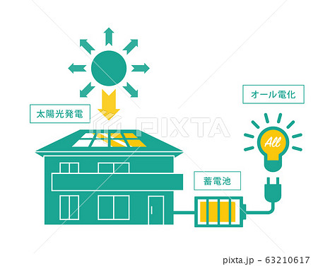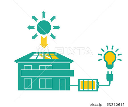 將產生的電力儲存在蓄電池中並在緊急情況下使用電力的房屋的插圖