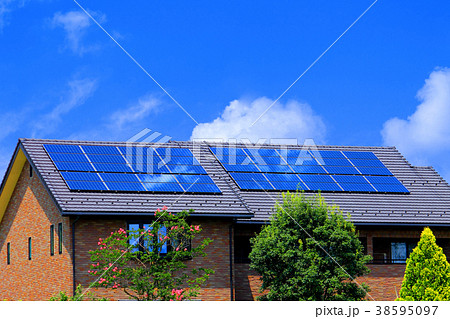 在屋頂的太陽電池板和在電燈泡的年輕葉子