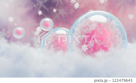 Stem cell cluster inside a sphere with snowflake. Cryopreservation, frozen storage, regenerative medicine, biobank preservation, cellular therapy concept.