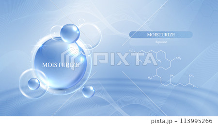Moisturizer and hyaluronic acid on a blue background. skin care with water droplets is absorbed into the skin and cells. use ads, lotions, serums, creams. medical and scientific concepts. vector.