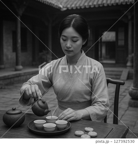 黑白茶道靜思女子|古風茶席 × 中國傳統庭院 × 茶藝侍茶姿