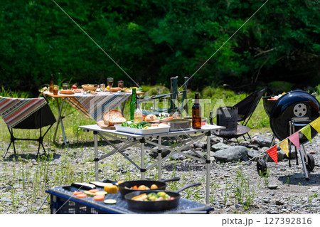 在房子的木甲板上燒烤和準備