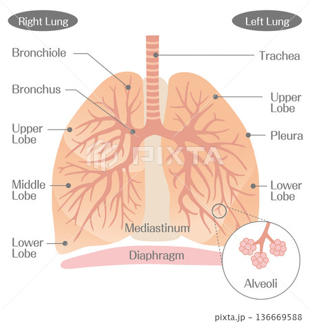 肺部結構解剖(氣管、支氣管、肺泡)顏色