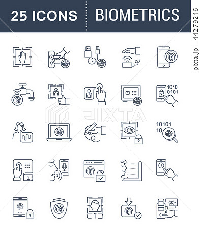 Set of vector line icons of biometrics for modern concepts, web and apps.