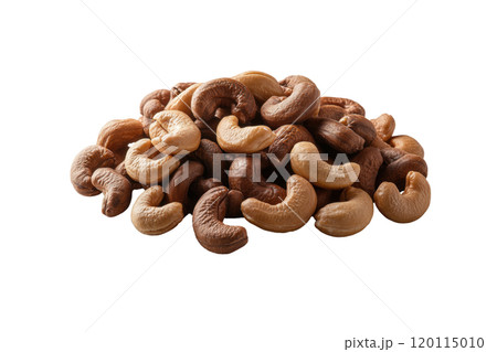Cashew nuts in various shades piled together, showcasing their unique shapes and textures. Perfect for healthy snacking or culinary uses