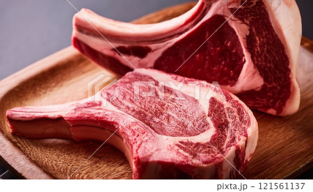 Raw t-bone beef on the wooden plate