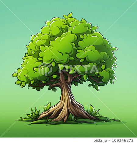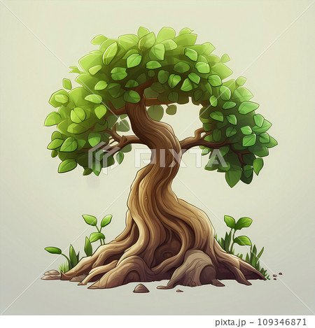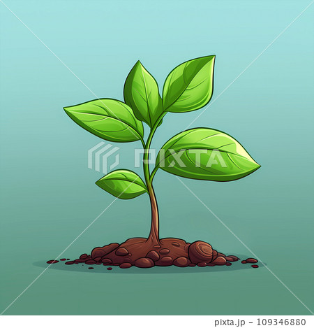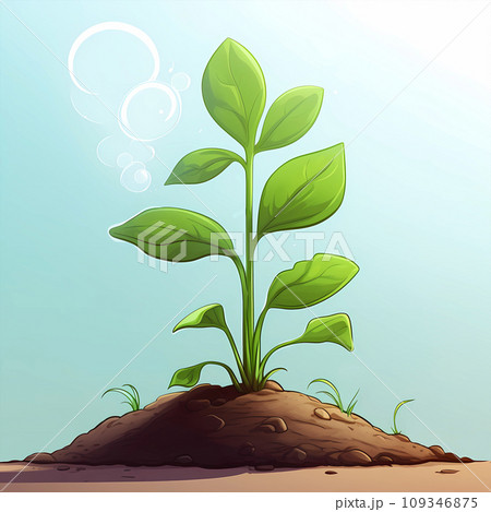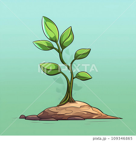 手绘卡通春天里生长的树苗插画