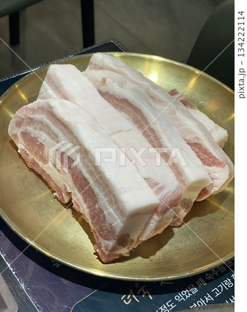 Top view of meat soaked in water to remove odors and blood before cooking.