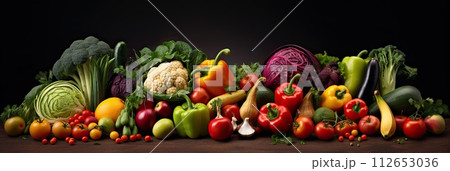 Multicolored, juicy vegetables and fruits on a table, healthy and wholesome food, Healthy Food Concept, Generative AI.