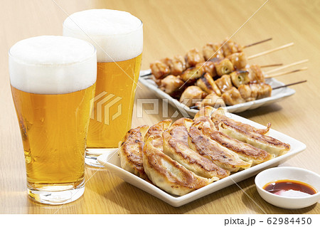 搭配啤酒的人氣料理_ Karaage,餃子,烤雞肉串,生魚片,香腸和毛豆