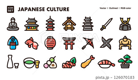 日本傳統文化圖標插圖集風俗、歷史、美食、建築、事件向量素材