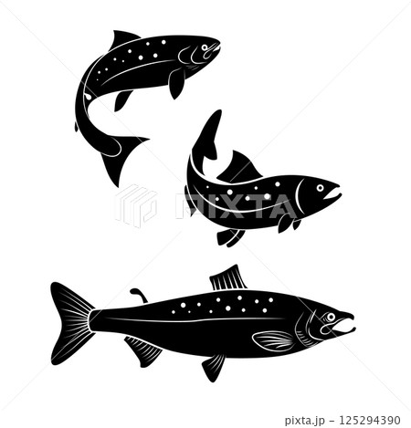 Set of salmon fish isolated on white background. Logo or label design element. Vector illustration.