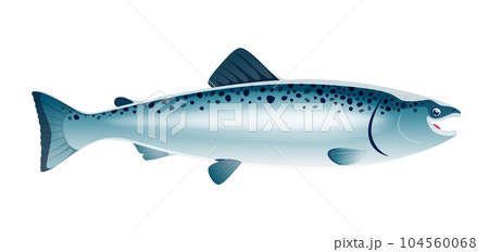 Cartoon salmon fish sea animal with sleek body, vibrant coloration, and remarkable ability to swim against strong currents during its annual migration. Isolated vector wildlife creature side view