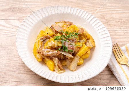 以日本製造的馬鈴薯“印加覺醒”為特徵,鮮黃色。潮濕,美味,受歡迎