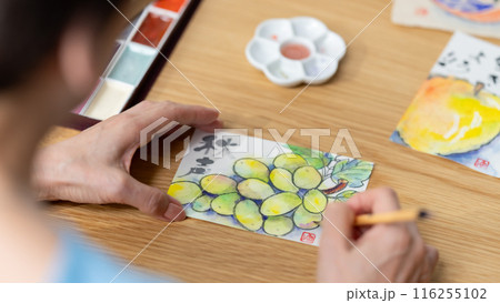 手繪水彩畫(繪信)《早瀨齋蜜柑》