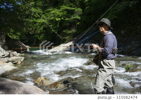 山間溪流釣魚河釣 Tenkara 虹鱒魚插圖