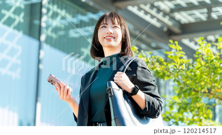 在戶外使用智慧型手機的年輕女性/女商人