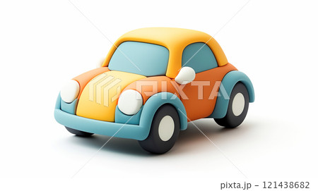 白色背景上彩色黏土設計汽車的 3D 插圖