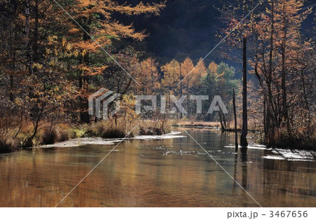 [秋天素材]秋天的上高地、田代濕地、田代池塘[長野縣]