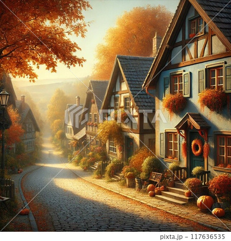秋天的早晨,太陽緩緩升起,整個村莊沐浴在溫暖的光芒中。