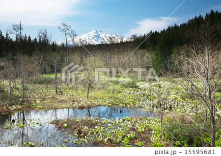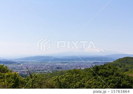 冬天的鳥海山和月山頂被白雪覆蓋的岩體