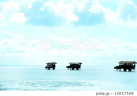 沖繩石垣島Iriomotejima Yufu島水牛和藍天