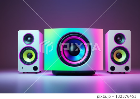 3D渲染卡通風格的手持智能手機,觸控式螢幕為空白,綠色粉紅色柔和背景為幾何圖形