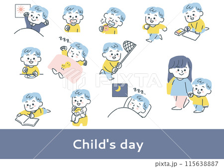 幼兒園和托兒所兒童(男孩)一天的插圖集