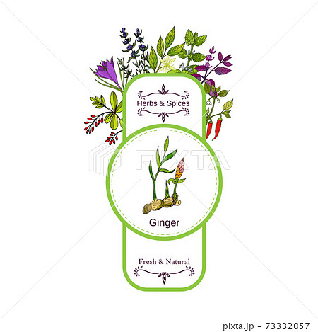 Vintage herbs and spices label collection. Ginger